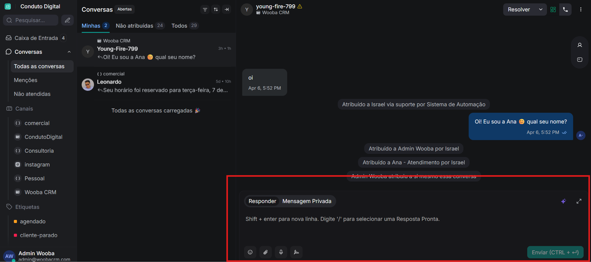 Como as conversas funcionam no Wooba CRM